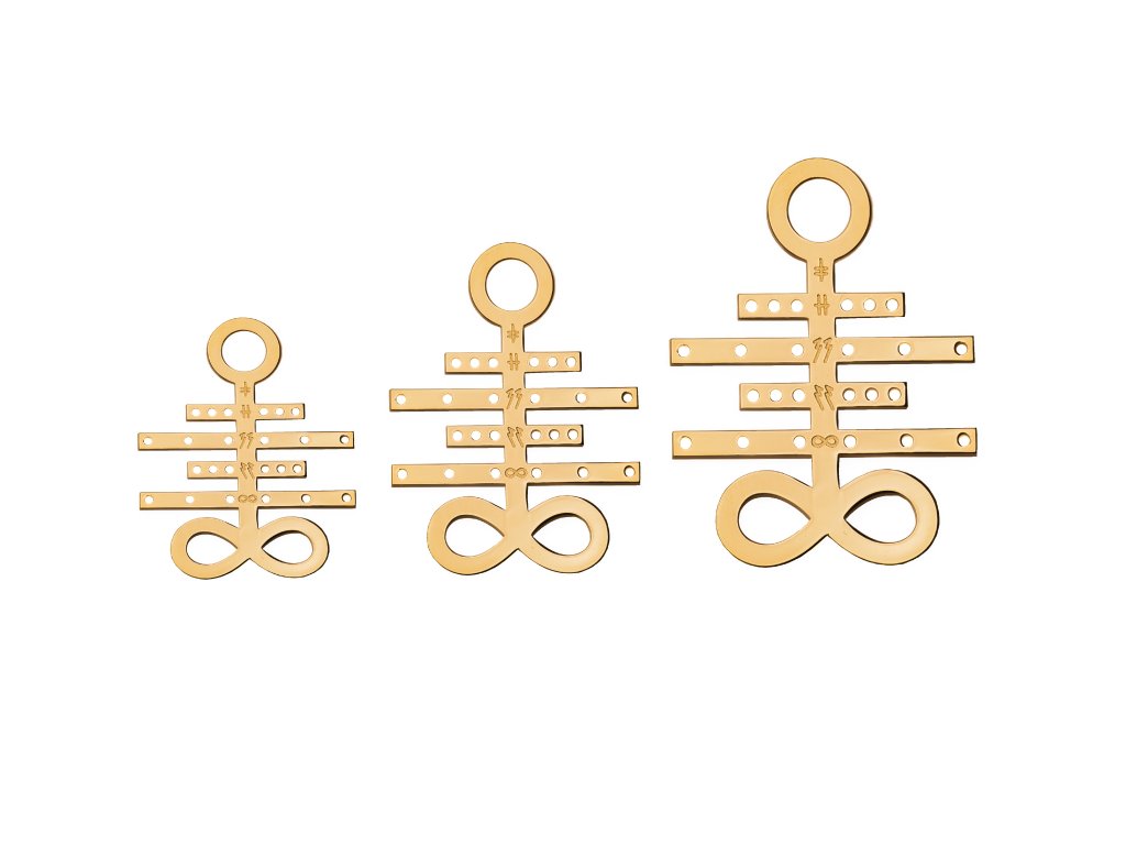 IGNI VELIKOST 90 MM POZLACENÝ 24K je harmonizační šperk s působivou silou, který v sobě nese odkaz skutečného seberozkvětu. Symbol IGNI byl stvořen pro zažehnutí vašeho hlubokého potenciálu – jeho 9centimetrová varianta navíc umožňuje propojit a harmonizovat až deset lidí najednou, a proto ho nazýváme „oltářní IGNI“.